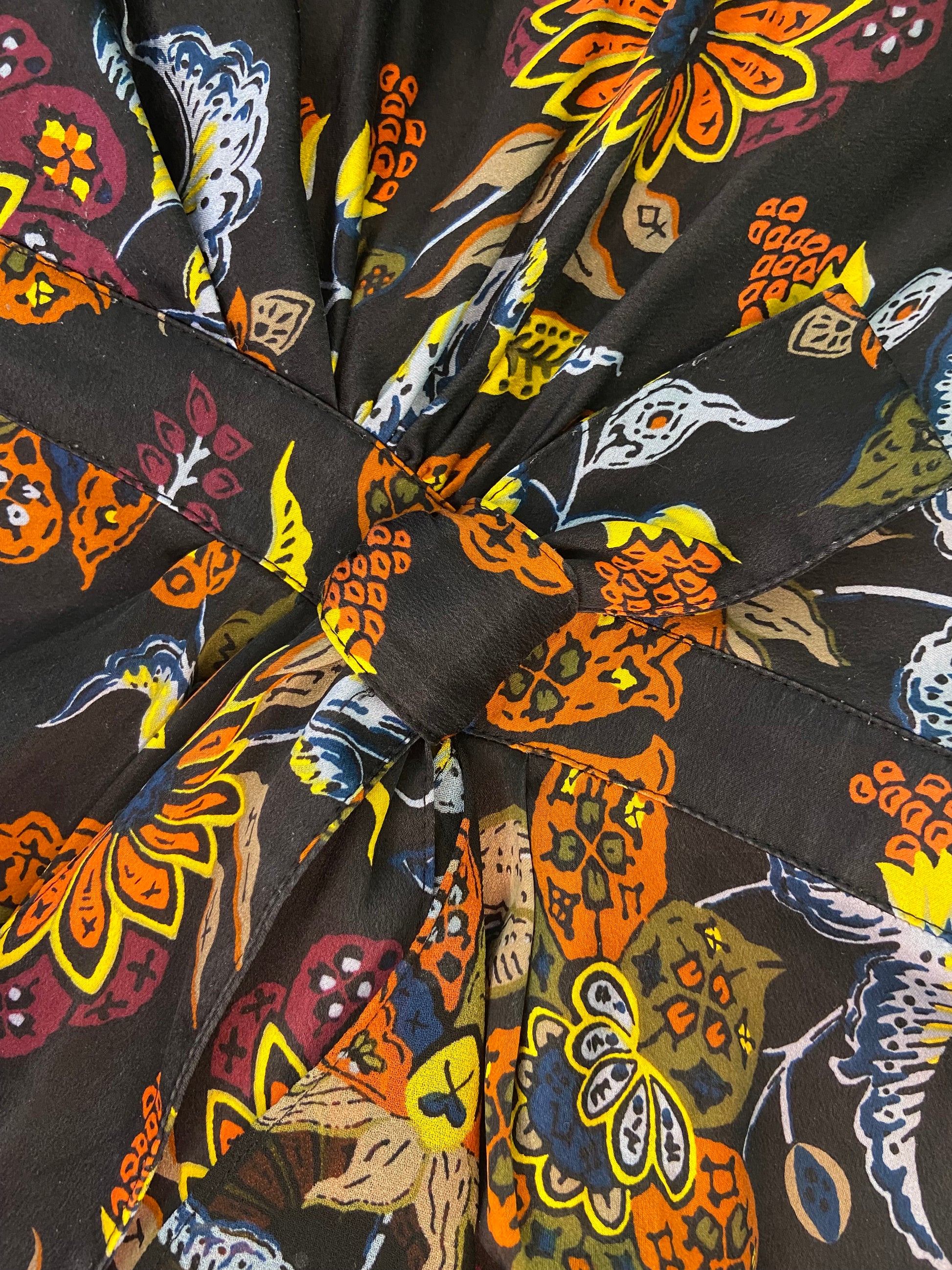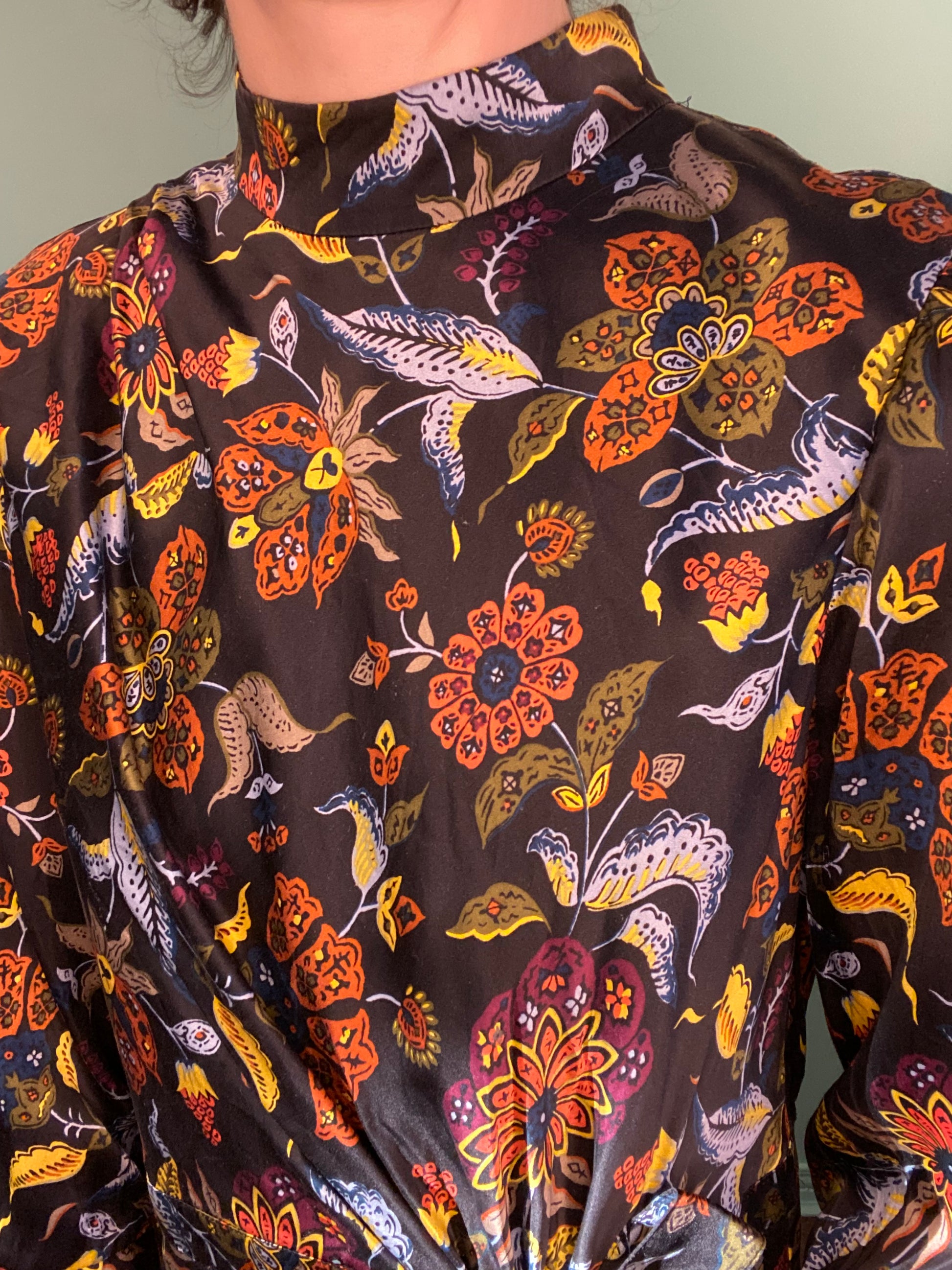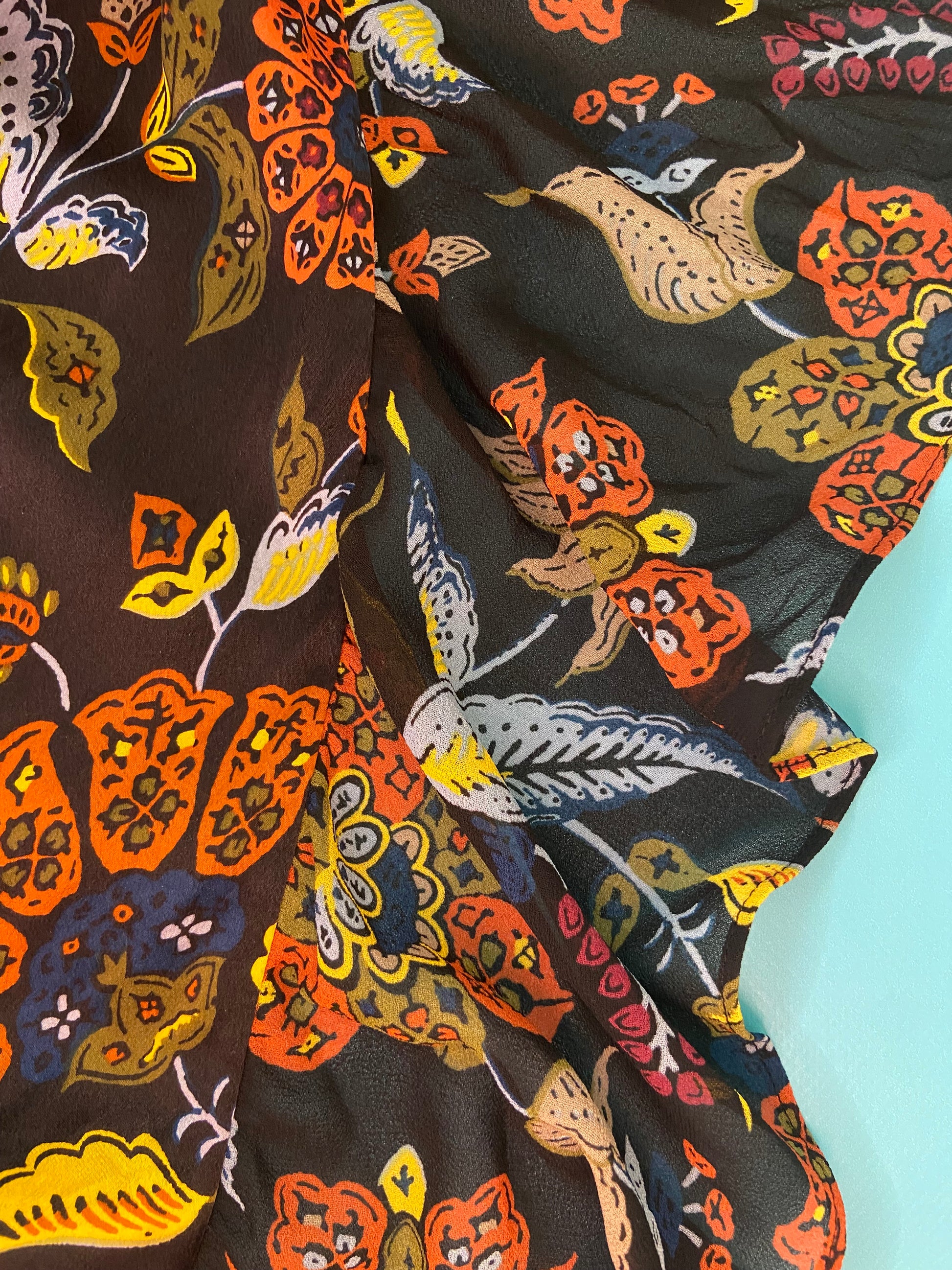THIS FABRIC IS LIKE BUTTA! DARK GROOVY FLORAL WITH LOTS OF RUFFLE DETAIL