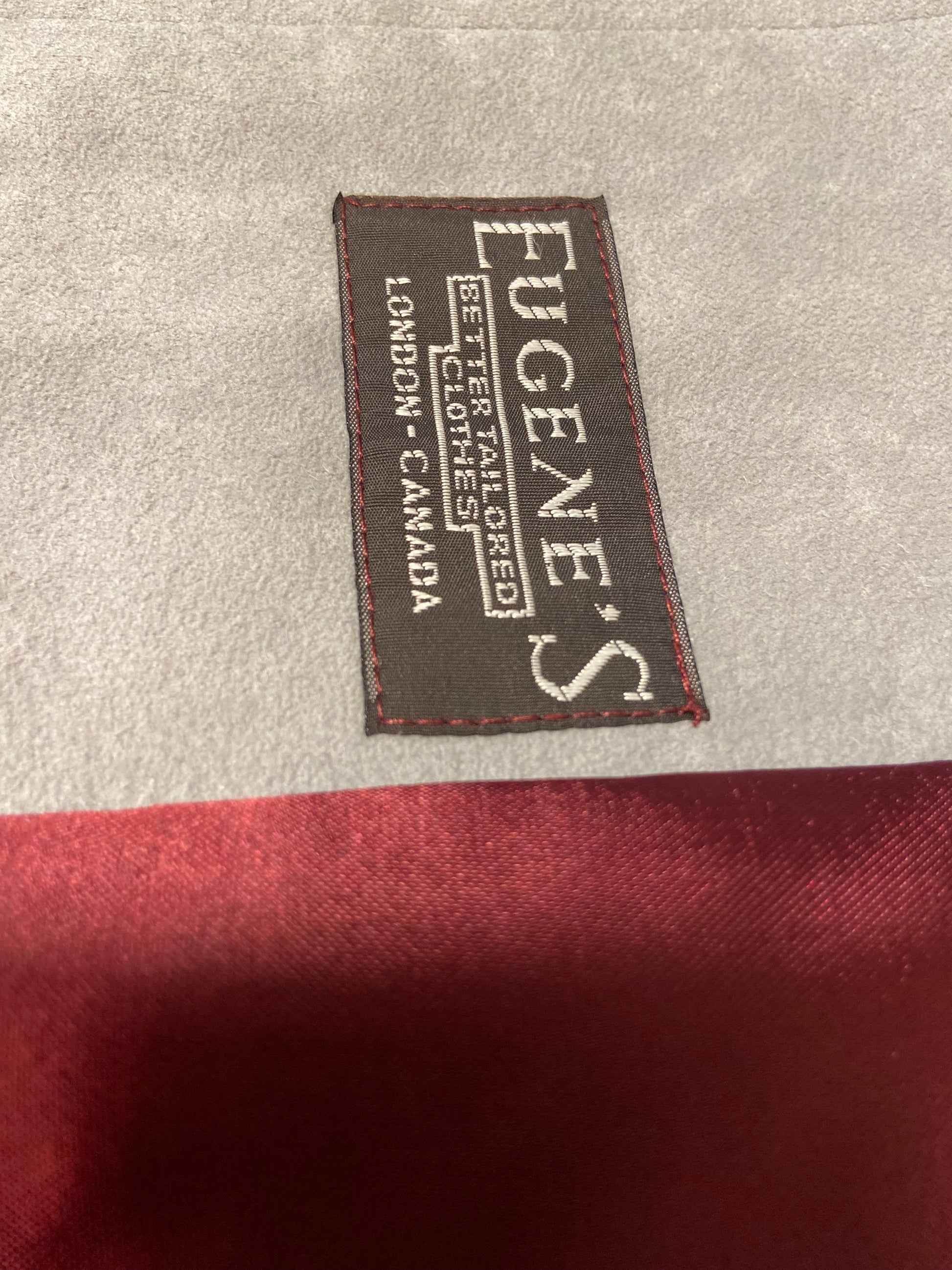 LIKE NEW. GORGEOUS DOVE GREY AND GARNET COLOUR DETAILING, BEAUTIFUL BUTTONS!