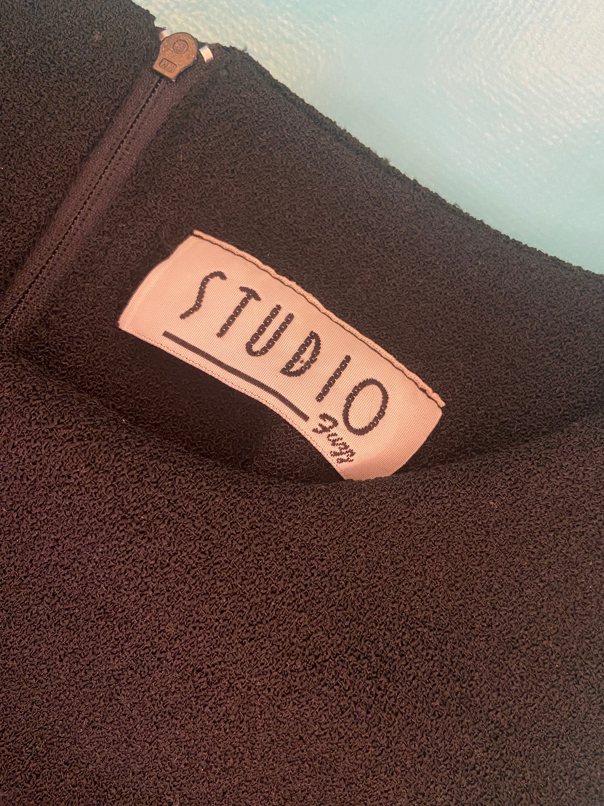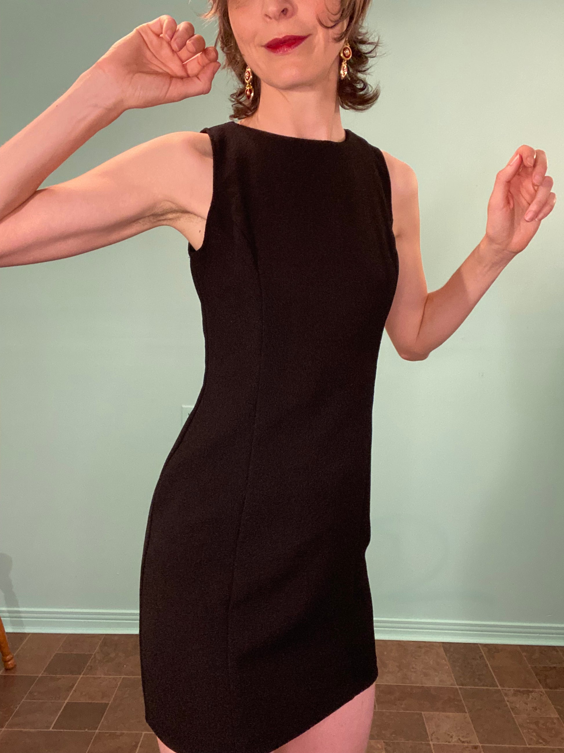 THIS DRESS IS INVITED TO EVERY PARTY. PRINCESS SEAMS AND LOVELY LIGHTWEIGHT FABRIC (NO FIBRE TAGS BUT FEELS LIKE WOOL CREPE)