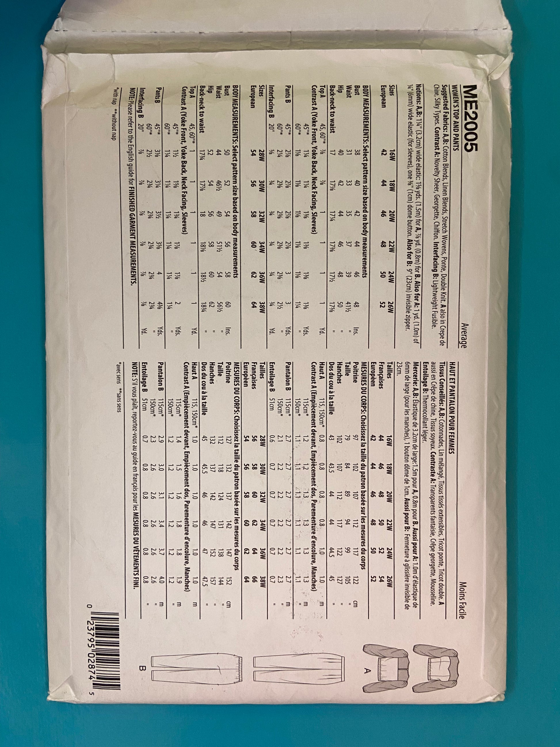 ***NEW UNCUT - "KNOW ME" TOP AND DRESS PANTS SEWING PATTERN
