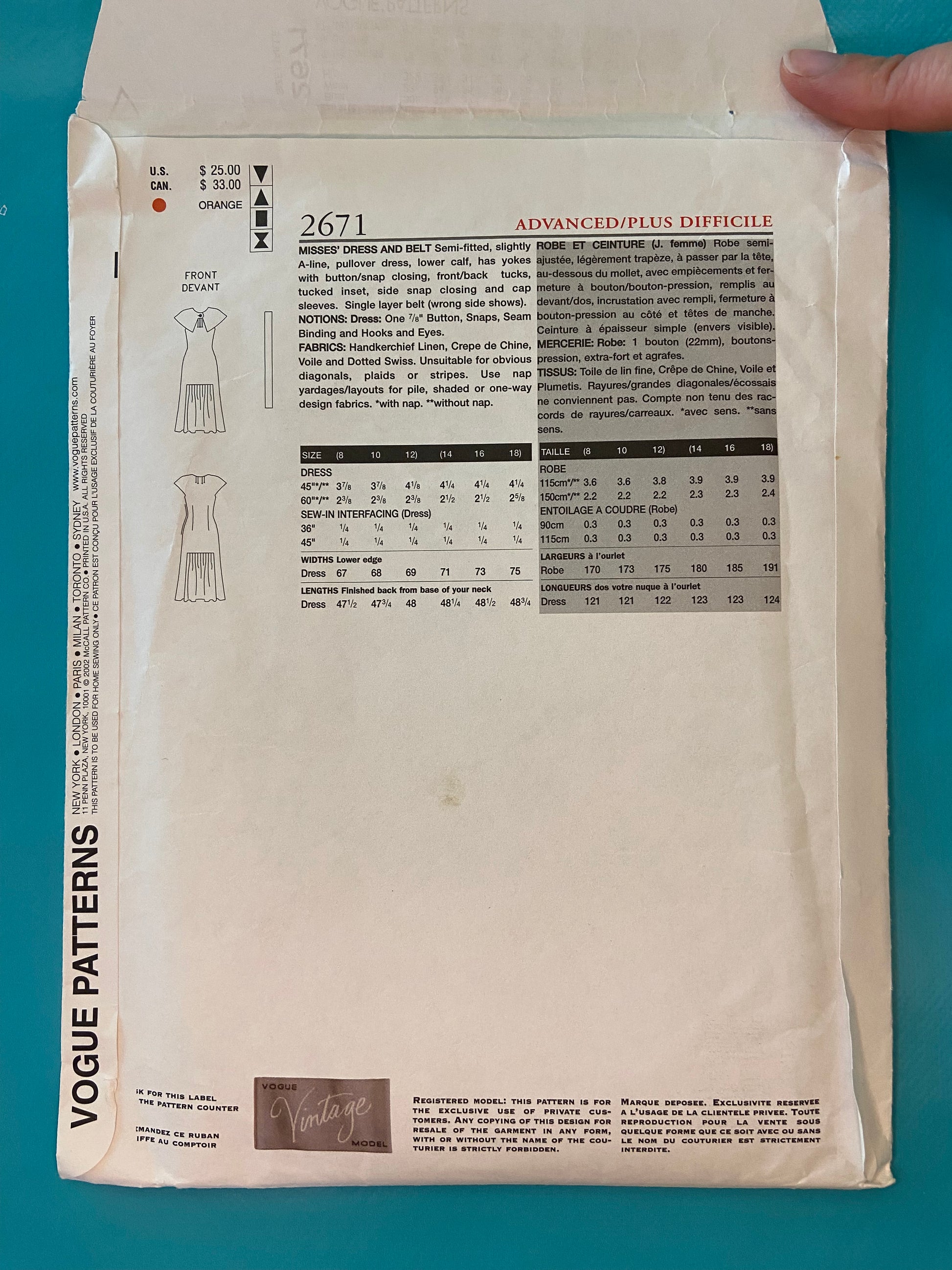 ***NEW UNCUT - "VOGUE VINTAGE REMAKE" DRESS AND BELT SEWING PATTERN