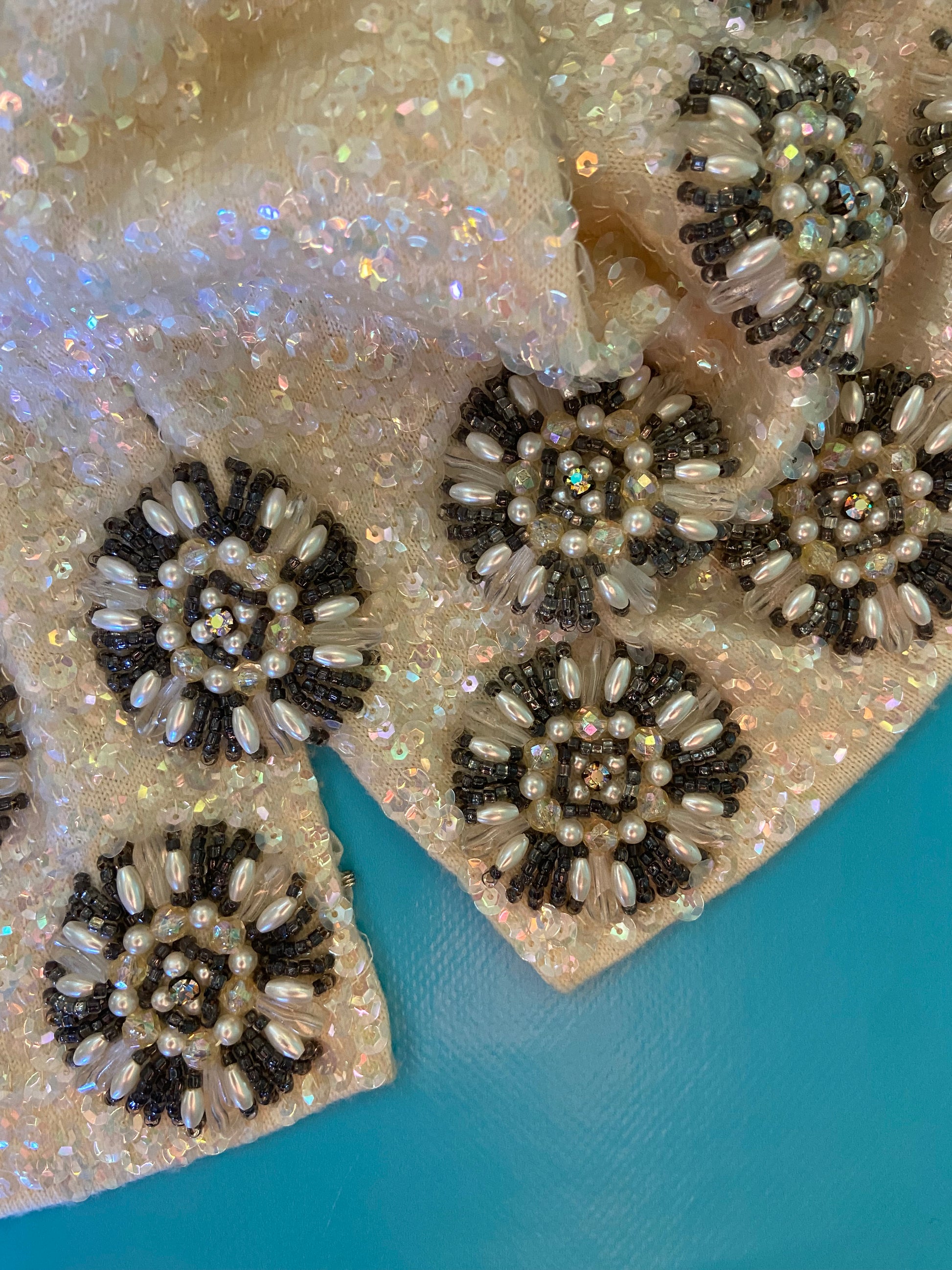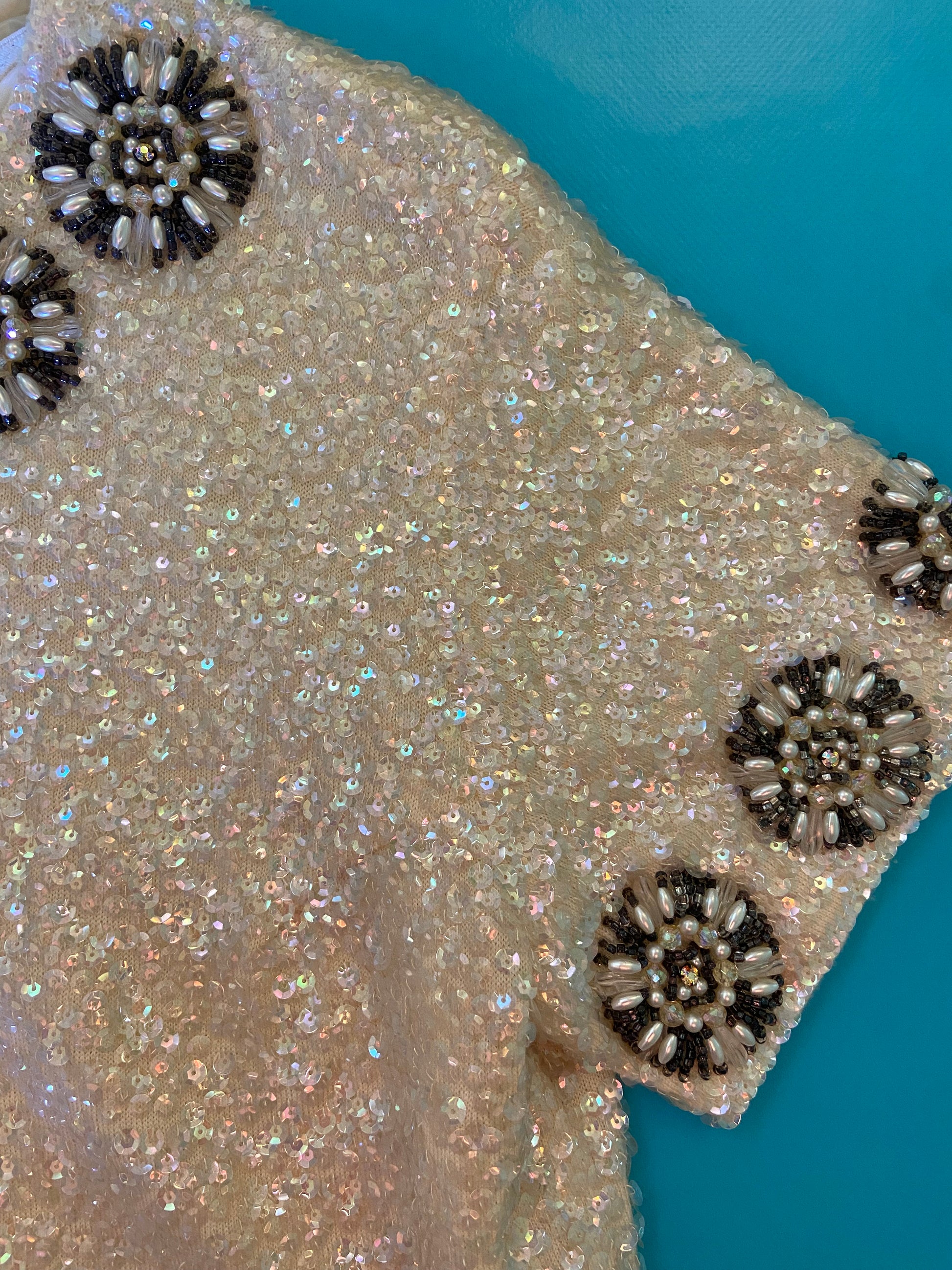 PRISTINE VINTAGE "IMPORTS BY ARISTO" %100 WOOL IVORY SEQUIN TOP