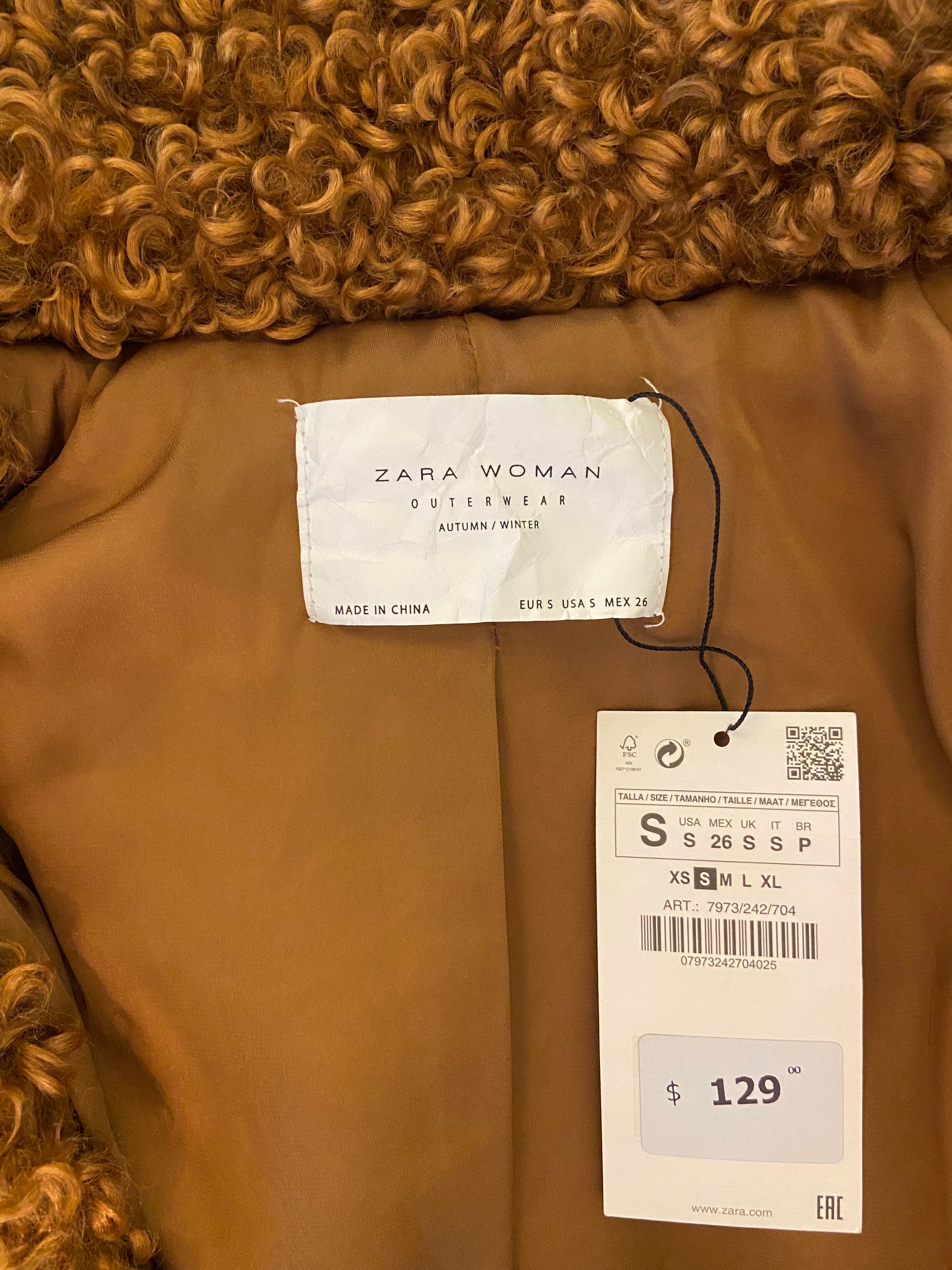 SUPER FUN "ZARA" ***NEW WITH TAGS CURLY FAUX FUR COAT
