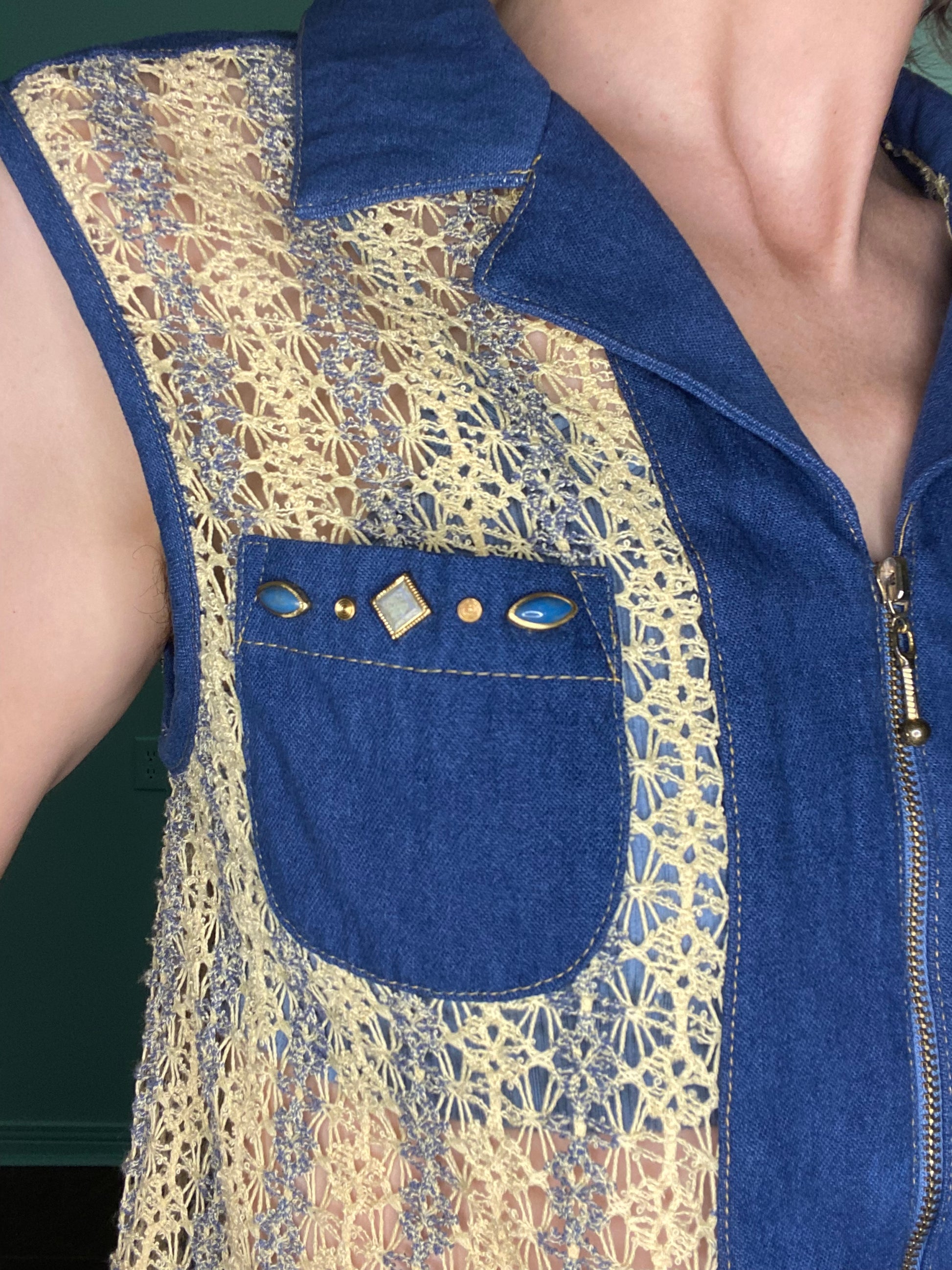 VINTAGE "CITY GIRL SPORT" DENIM AND KNIT VEST