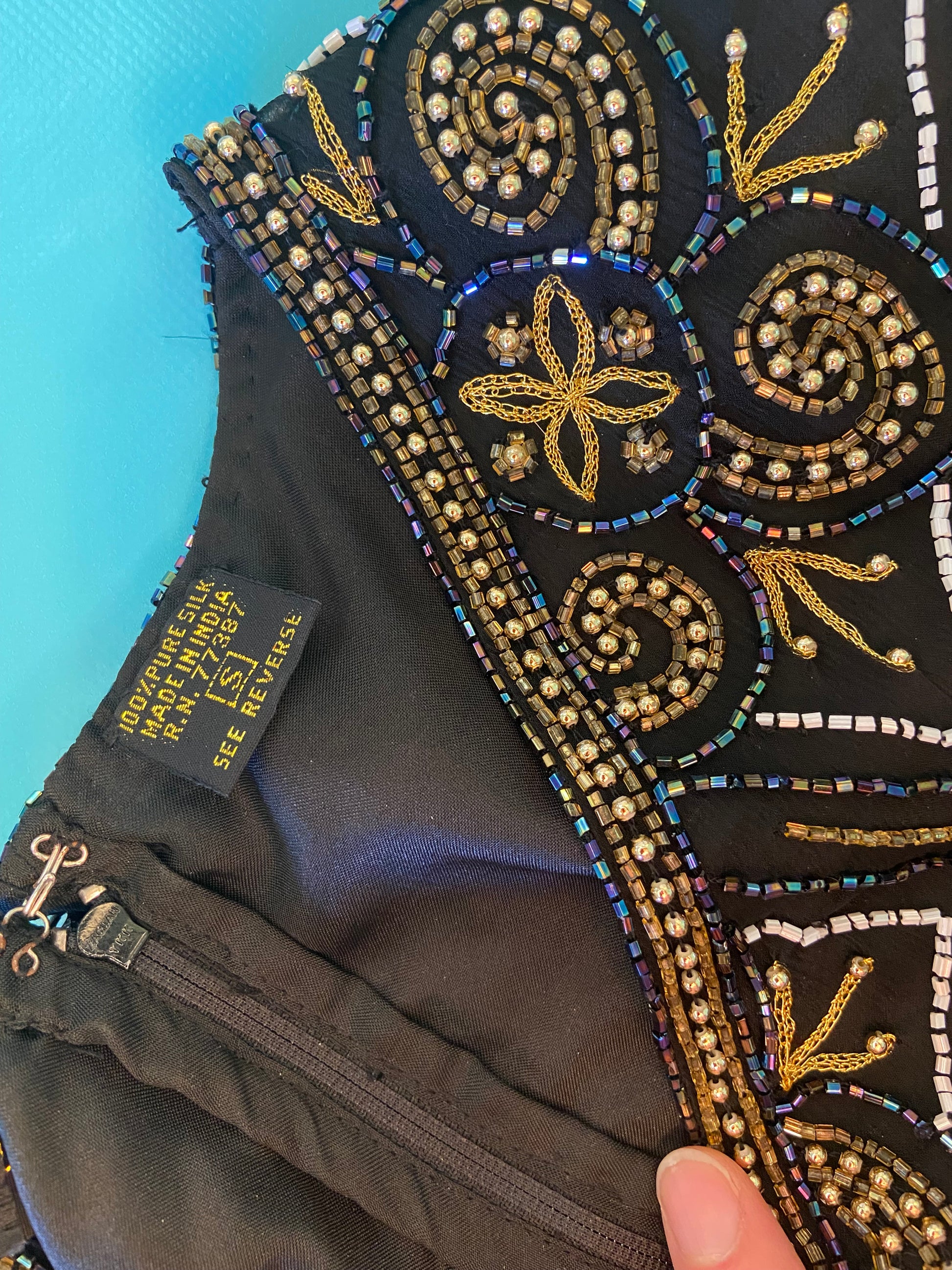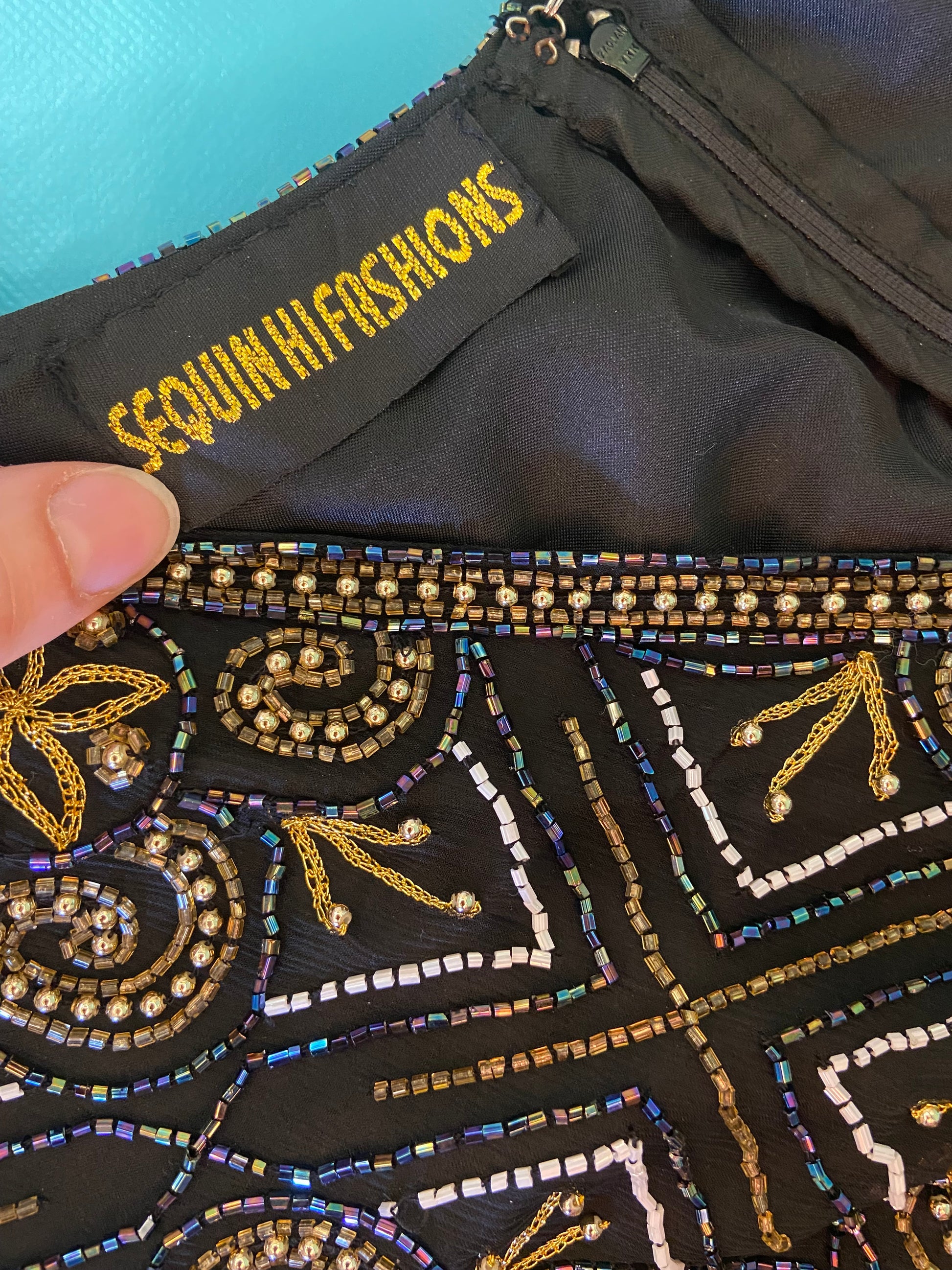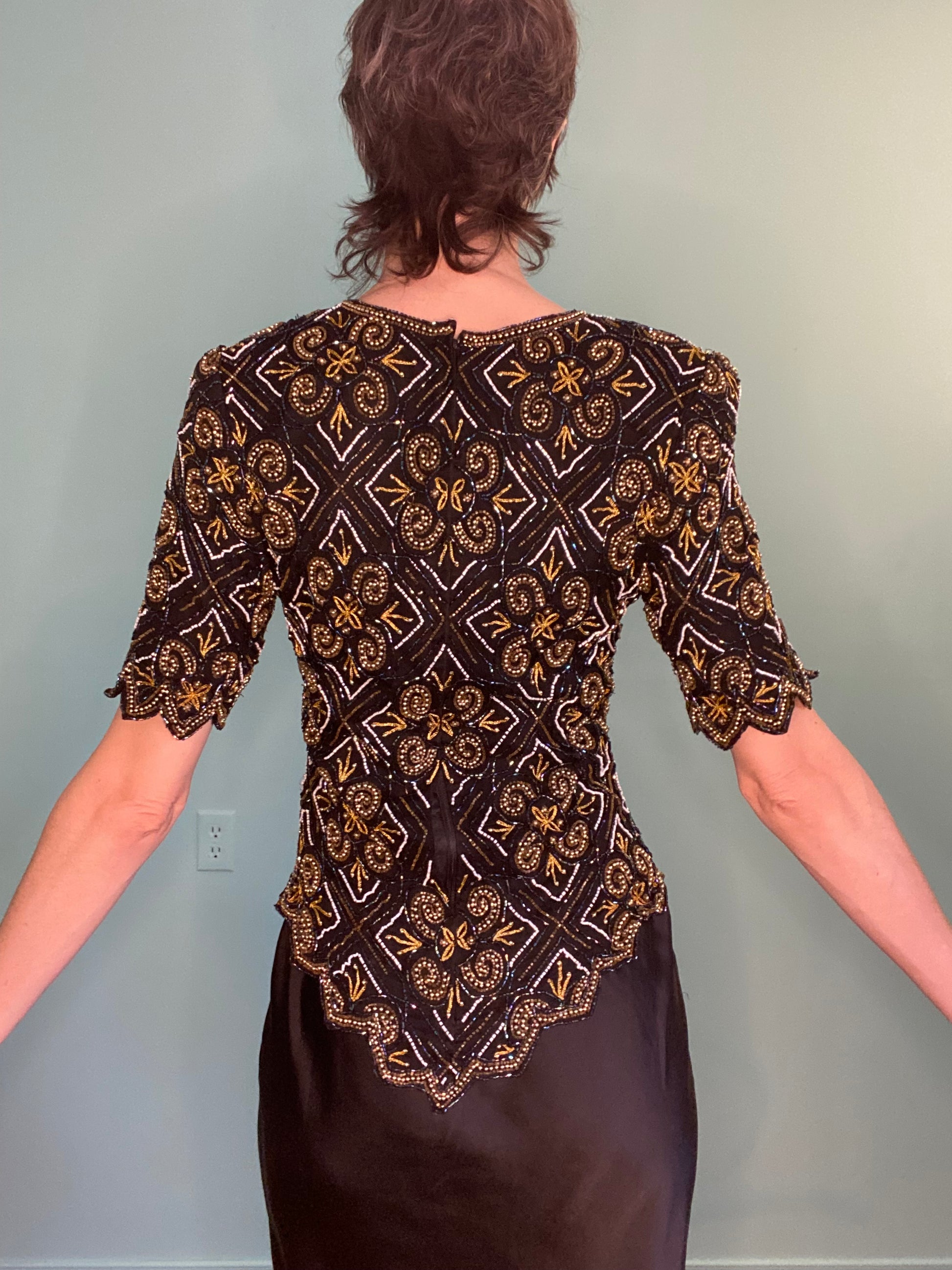 VINTAGE DIAMOND GEOMETRIC SEQUIN TOP WITH BEADED SCALLOPED EDGES