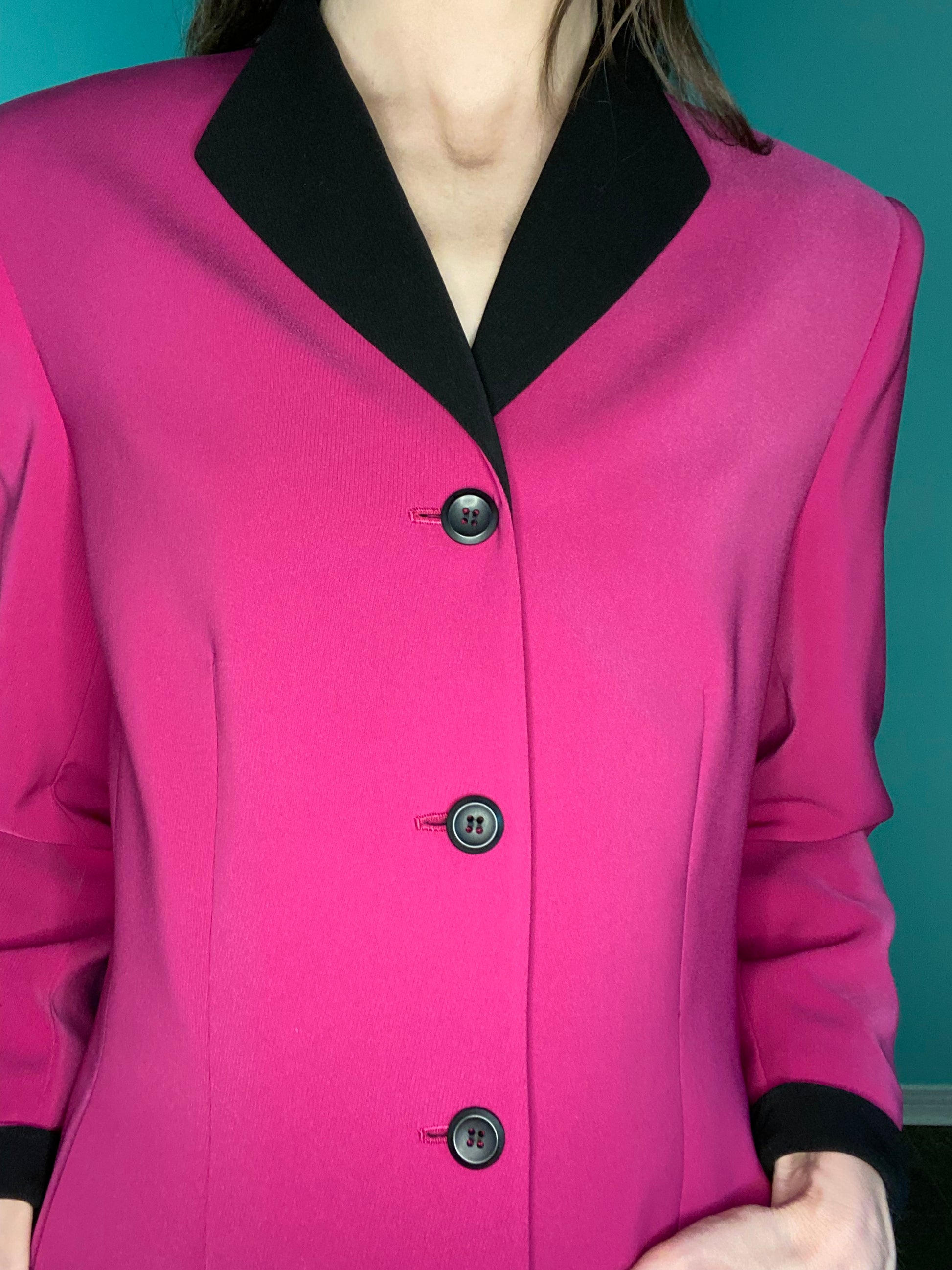 GORGEOUS RICH COLOUR WITH CONTRASTING BLACK LAPEL AND CUFFS.