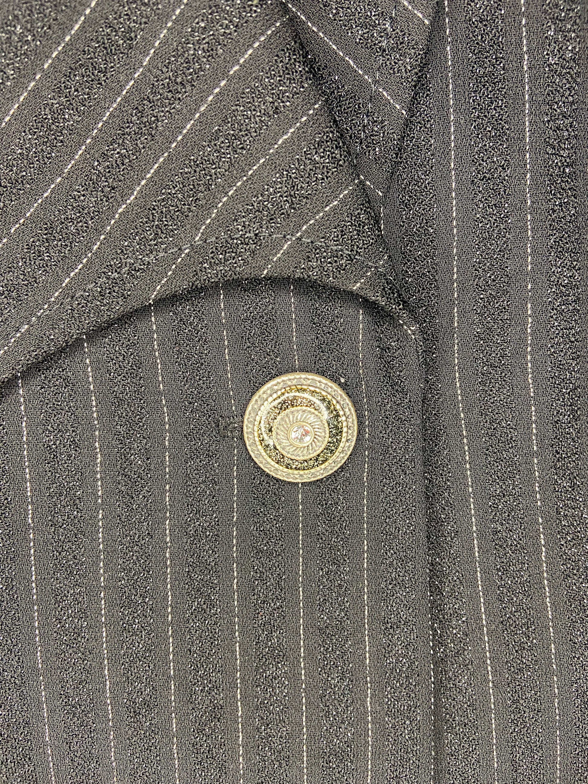 PINSTRIPES, SHOULDER PADS AND SUBTLE GLITTER? DOUBLE BREASTED WITH STUNNING BUTTONS. YES MADAM PRESIDENT!