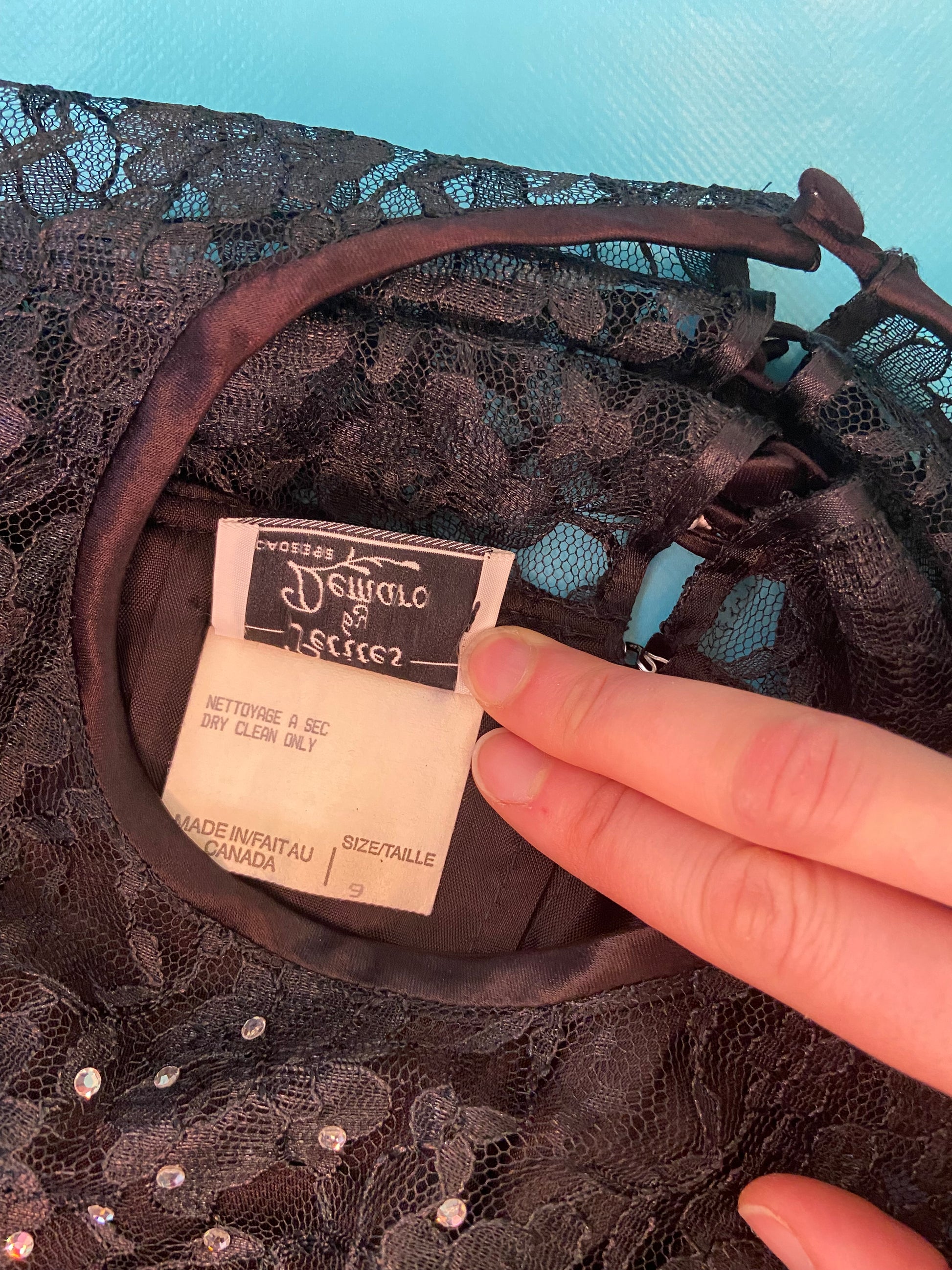 VINTAGE “PETITES BY DEMARO” VELVET LACE AND RHINESTONE COCKTAIL DRESS